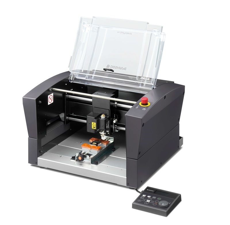 The DE-3 can produce a variety of engraving applications including industrial nameplates, signage, awards, and gift personalisation. This next generation engraver incorporates many new improvements including: Ethernet connectivity, updated nosecone technology for higher quality engraving on uneven material, data buffer for offline engraving, laser pointer for precise material alignment, and new bundled software: Dr. Engrave Plus. This new software has advanced features such as AI and EPS file support, levelling and drilling functions, and Variable Data Printing.