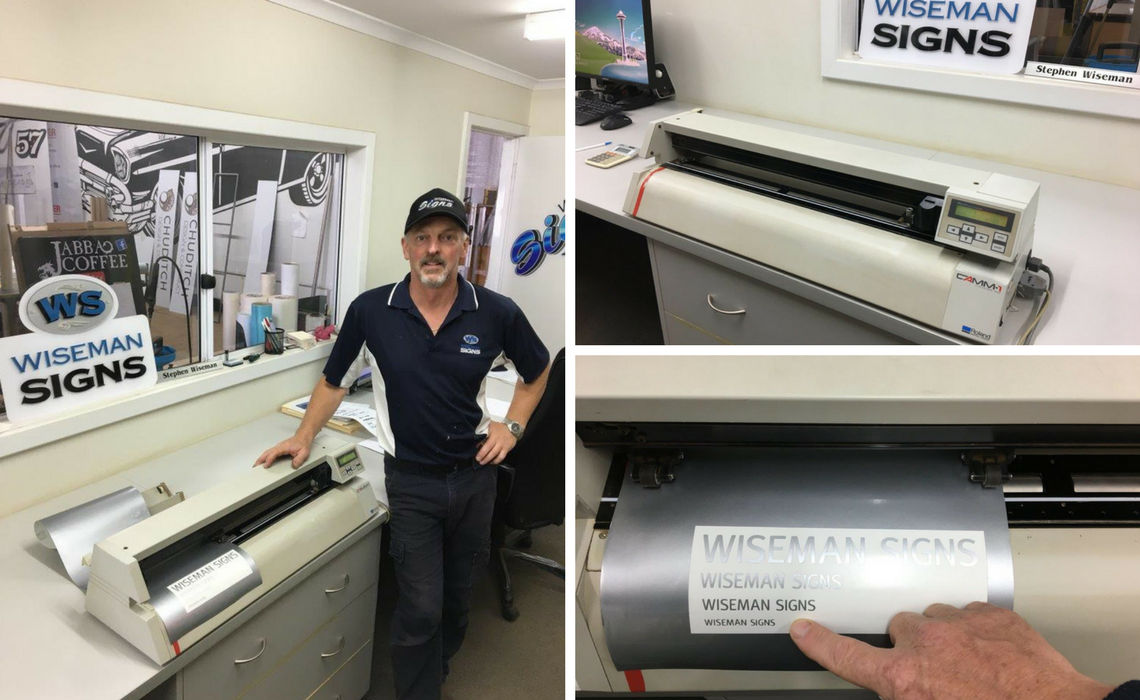 Wiseman Signs has evolved from traditional signwriting methods using hand lettering, gold leaf and original font designs to embracing digital technology in the form of Roland DG wide format printer cutters. In 1992, Stephen Wiseman, owner of Wiseman Signs, purchased the company’s first computer sign system, a Roland DG PNC 1100 plotter. Stephen quickly realised the benefits of adding this new piece of equipment: “From a signwriting perspective, being able to marry this technology with traditional signwriting methods was wonderful and the benefit to our business was immediate”. 26 years later, the exact same Roland DG plotter is still in use. “In real terms, it has worked well over 8000 days and done hundreds of kilometres of cutting.” Stephen said. “This machine is still capable of cutting 6mm lettering, has never had the roller wheels replaced and still sings the PNC 1100 tune.”